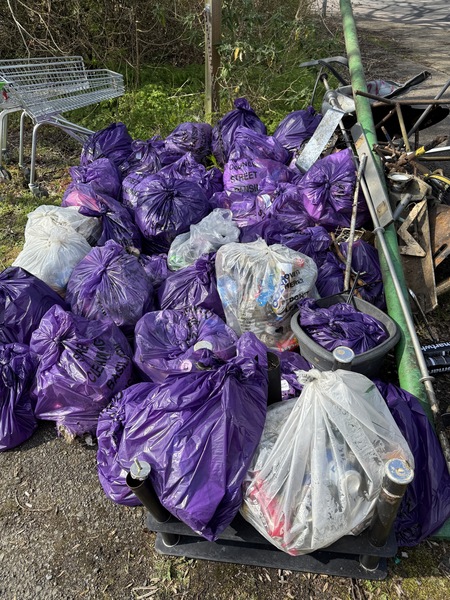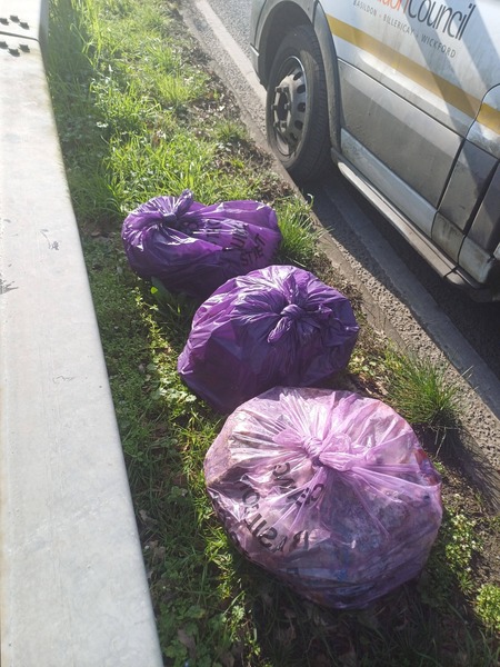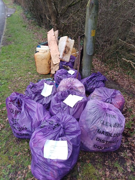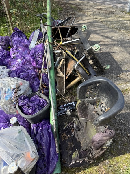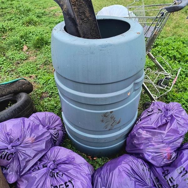 Gone Fishing..🎣. Did not expect a little stream at the bottom of the embankment at Willowfield. The A127 goes by near this. But I enjoyed thinking if a frog 🐸 might love this water now litter free🙂. In the meantime Diane Hurley had found Ian in the wood on the opposite side of the road in Willowfield. They picked 4 sacks and found a tyre. They did not see the Basildon Council truck stop and load their sacks. I had finished my fishing 🎣 and was tying up 3 sacks filled and waved the truck over so 7 sacks went immediately. This made my day 🙂. We all carried on picking.. Final stats 16 litter sacks plus 7 collected = 23 purple litter sacks filled A plastic roof of something Guttering / pipes / a tyre A litter pick (not ours) I bagged up a campsite of damp sheet / duvet / pillow laid over a large piece of carpet. Only got carpet out by dragging it up the embankment. It then rolled onto a purple sack ✅️ Recycled♻️: 10 glass bottles, 18 plastic bottles, 32 drinks cans and 2 vapes. Fabulous womble work by everyone today - dream team. Thank you so much 🙂🐿
