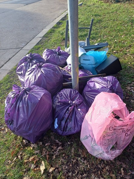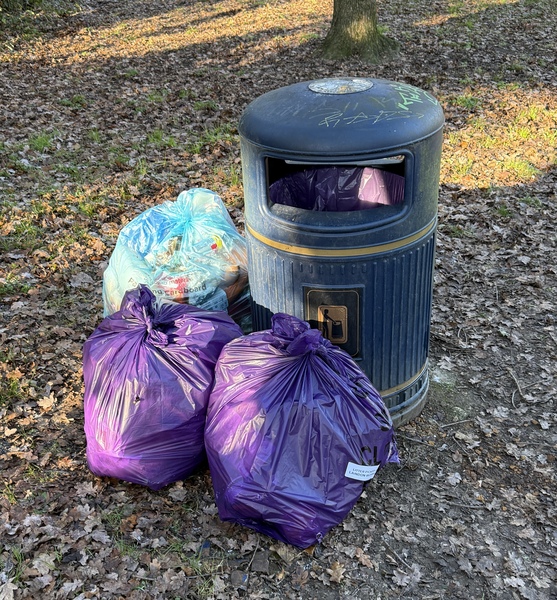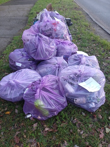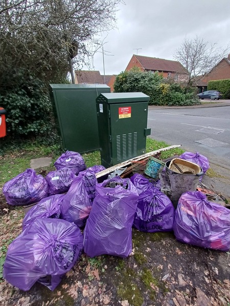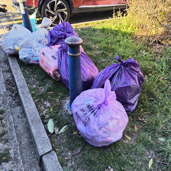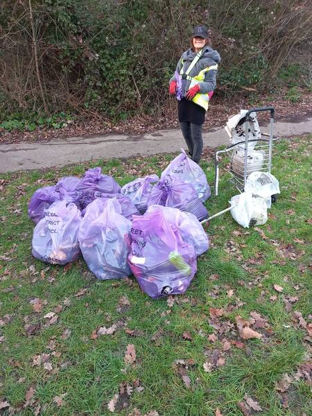 Drum roll ... 🥁 (no we did not find a drum although a metal swing bin came close😮). Today mini team Steeple View passed 200 litter sacks filled since 3 December 2025 😃. WOW 😍 Special thanks go to Karen Lee Diane Hurley Stella Ian and Keith for being part of the Winter BiG Clean Up of Steeple View which continues.. Hornbeam Way today gave us 15 purple litter sacks filled 2 nitrous oxide canisters Metal shopping basket Metal swing bin Washing up bowl and a saucepan Traffic cone Metal / wood skirting boards / plastic guttering Recycled♻️: 62 glass bottles, 8 plastic bottles, 18 drinks cans, 3 vapes 😃🐿