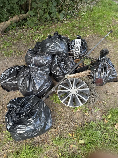 Around Malling. Bags plus a large carpet and a roll of chain-link fencing!