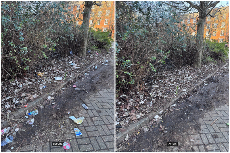 Cleaned the usual spots - a corner of Canada Street and Surrey Quays Road near Phantom Peak as well as shrubs along Roberts Close. Assortment of old junk and a pile of ancient litter. One more session to go probably to clean the remaining patches there.