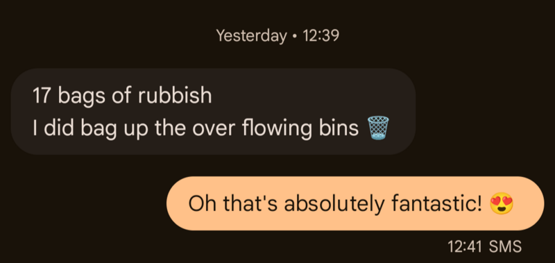 🚯Susan Couzens🚯 I have collected a full black bin bag this week. I am noticing more litter of late being dropped. Picking up more alcohol bottles and beer cans seen in town 🫣. 😊
