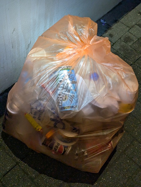 🚯Roxy GR🚯 This week I collected a full garden sack and a black bag bin. I agree with the other com a lot of alcoholic cans and bottles and the rest of takeaway meals, bags, containers, drinks cups is increased..somebody left a yellow bag (from the nearest nursing home I guess) full of adult nappies in front of a back gate, someone moved the bag a littler further away in the lane...and still there. I couldnt think of how pick and dispose of infectious or potentially infectious waste contaminated with human bodlily fuids and maybe something else. I think the company responsible to pick up them or the staff working there should be responsible for it.