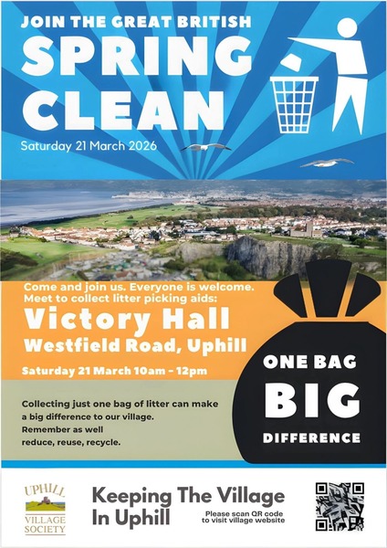 🚯 Uphill Village Society🚯 Thank you to all those who took part in today’s Uphill Spring Clean. Around 20 bags of rubbish were cleared from the village streets and adjacent nature reserves. Sadly some areas will require further attention but today’s efforts have more than helped Keep Uphill Tidy and ready for the Easter Trail around the village on 4th April