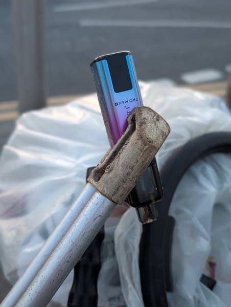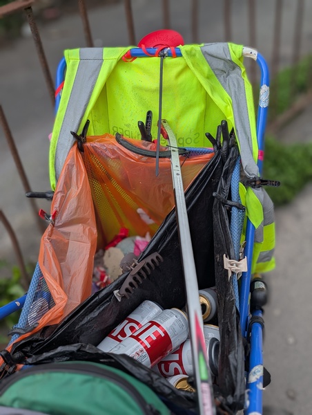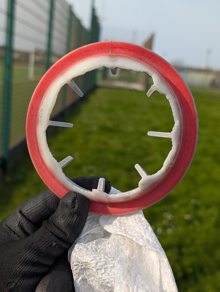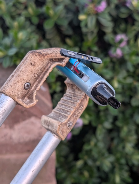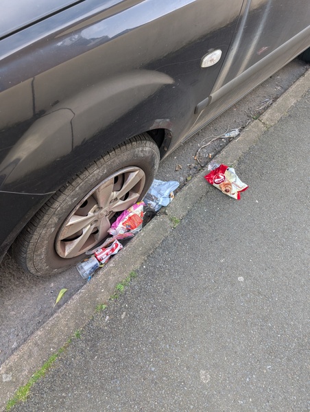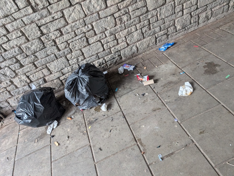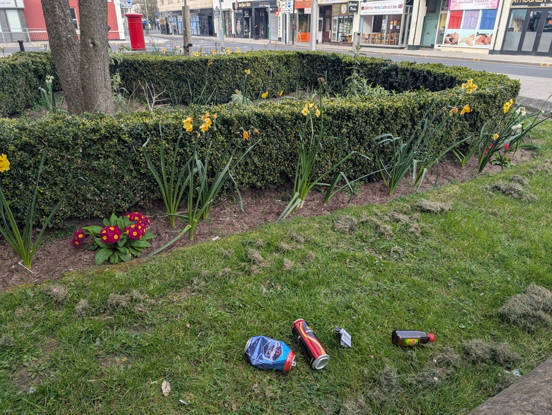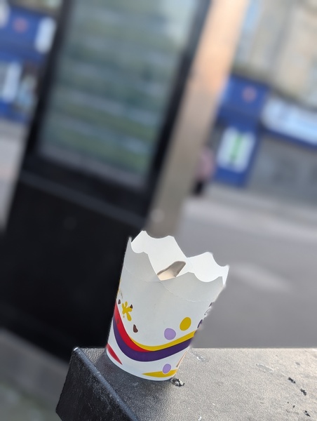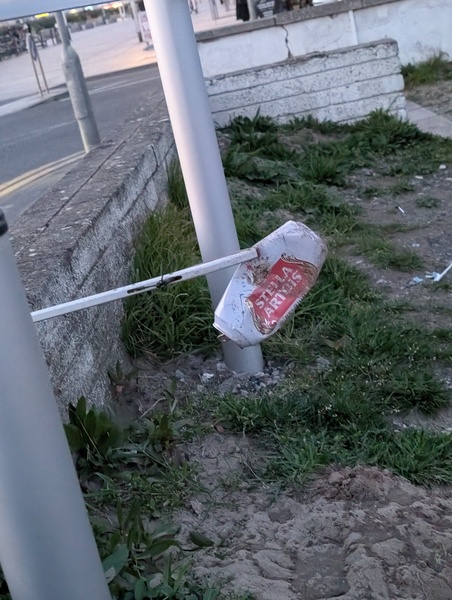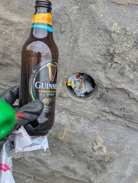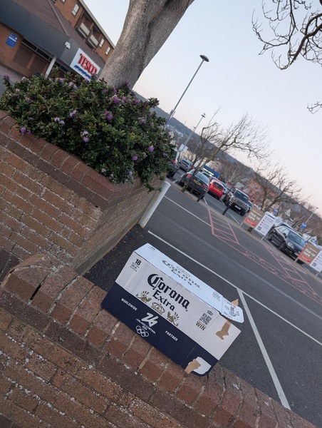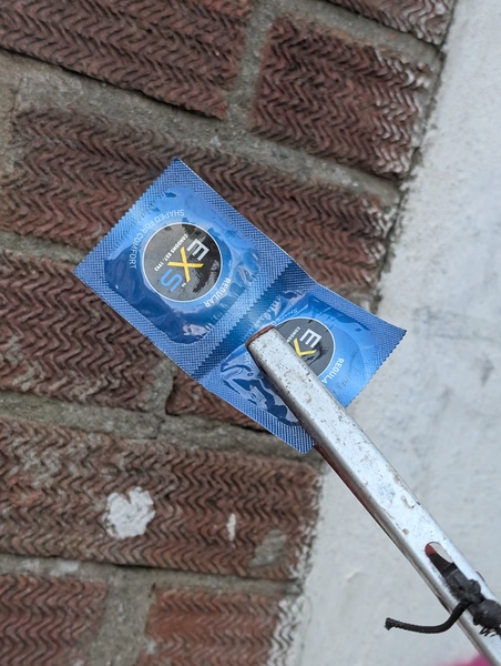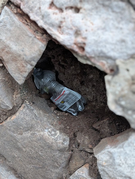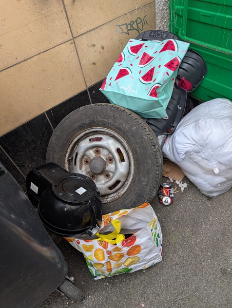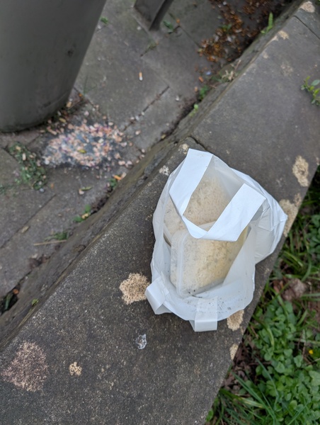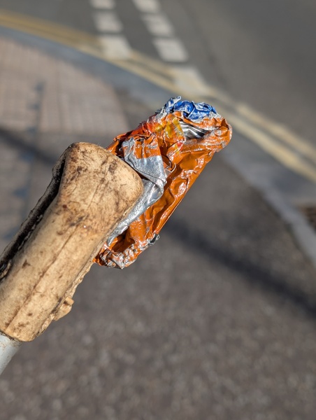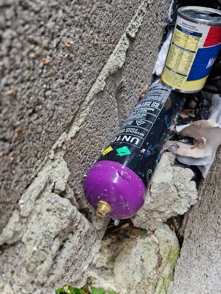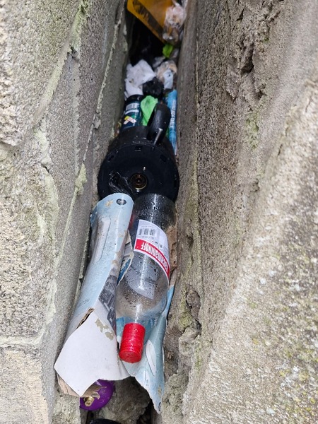 🚯Susan Couzens🚯 Took this photo on my way to town. Between a fence and wall through my usual cutthrough at the top of Osborne Road and Earlham Grove. Collected the security nets which cover alcohol bottles, where the alarms went off for a short while whilst walking into town🫣. There was also a nitrous? canister to do with catering which I left and an electric kettle. 🤔