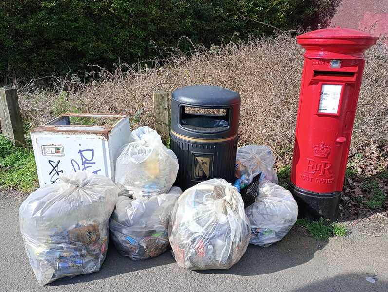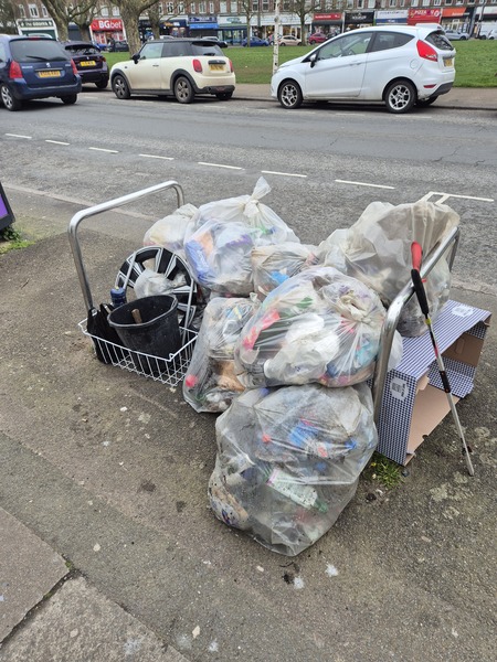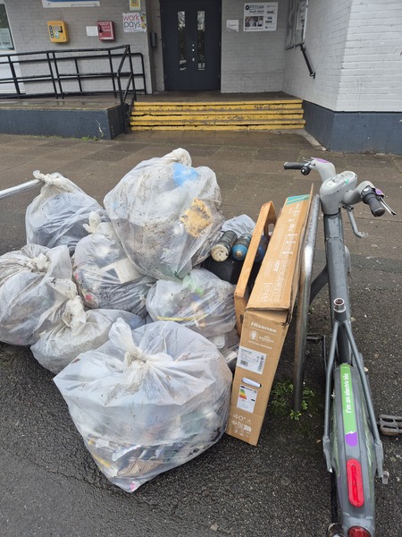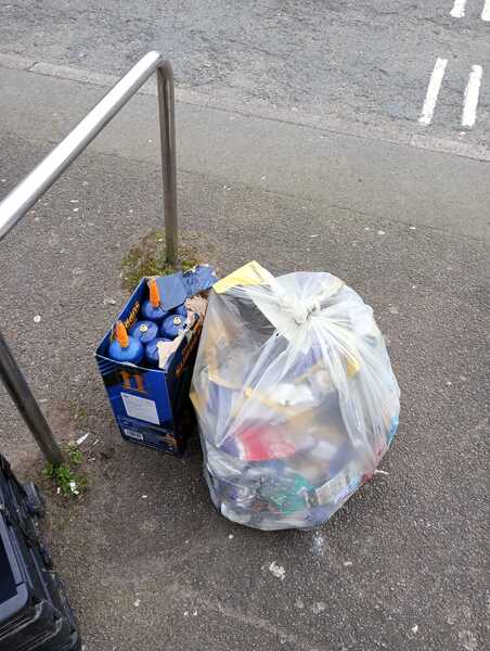 12 bags today and also a damaged council e-bike, flat tv box, electric pump battery, 3 canisters which were collected by local recycler and a wooden tray. There was also an additional 2 bags 1 solo on Wednesday by Roy and another yesterday by Janis. I put the other bag into my household bin yesterday.