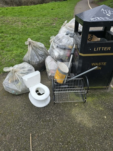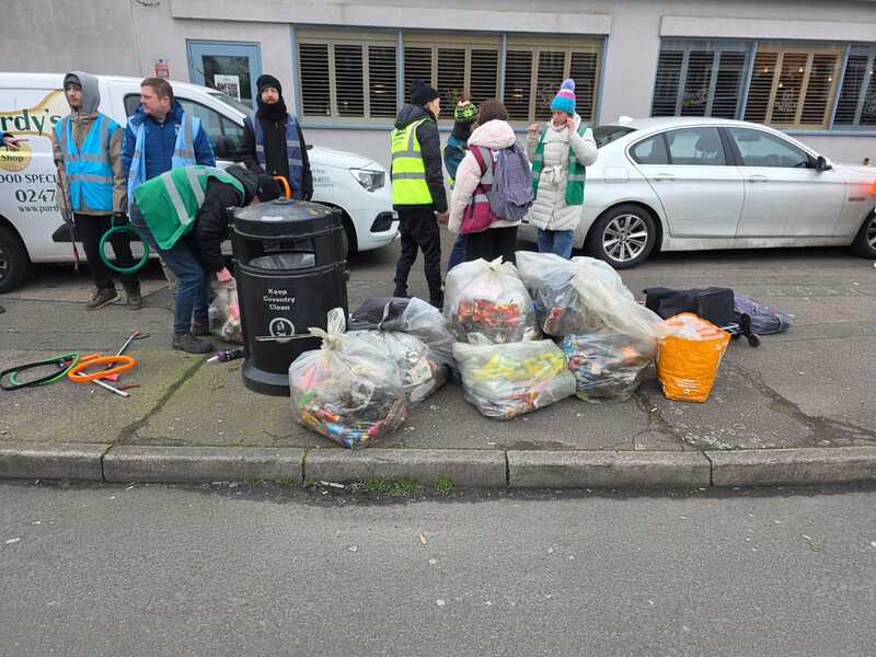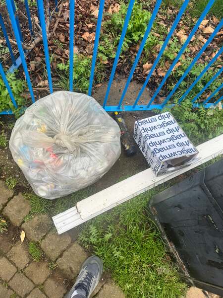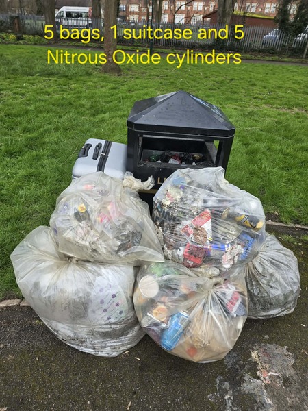Today after a night of dismal rain 5 of us tackled a grot spot on Daimler Green. Feeling accomplished after 15 bags, a crate of miscellaneous items, part of a toy scooter, cardboard, hoover, 4 canisters and a small carrier of vapes, aerosols, batteries etc.