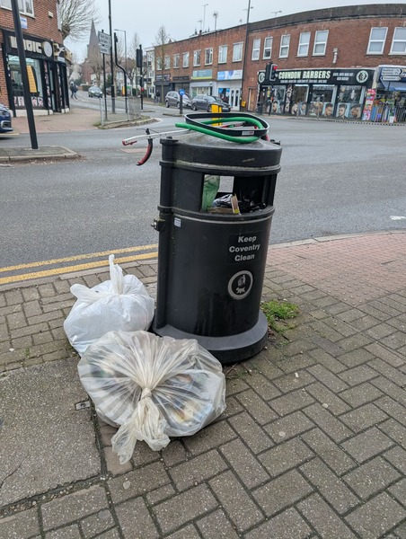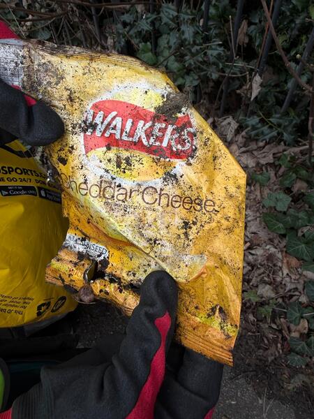 Radford Rd from fire station to Phat Bear. Our 2nd monthly womble with Chat Central, great turnout and another massive haul of bags. Vintage find logged 3 May 2008. Walkers Cheddar Cheese crisps packet. Fixed long picker after cable frayed. 1 bag left at Daimler Rd by Janis who headed off before we finished and carried on up Lydgate Rd. 5 bags in Foleshill prepick from Rupert.