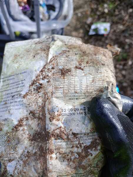 Today we returned to Daimler Green to tackle the shrubs behind the community centre. 7 bags, 1 canister, 1 small bag vapes and batteries, 1 TV stand. I broke the trigger on my picker so in my annoyance delved into the back of one shrub up to the property wall. Vintage litter 2009.