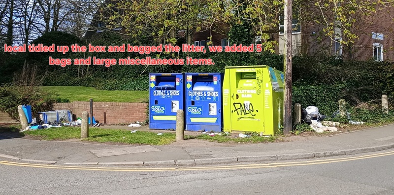 As this week is Easter School Break we decided to do an extra stint along St. Nicholas Street to Coventry Canal Basin. Mary + granddaughter Ava joined me, Roy + John. On route we met with a local at Samuel Vale House clearing up local flytip area, and 2 Citizen litterpickers. A few other flytip spots noted.