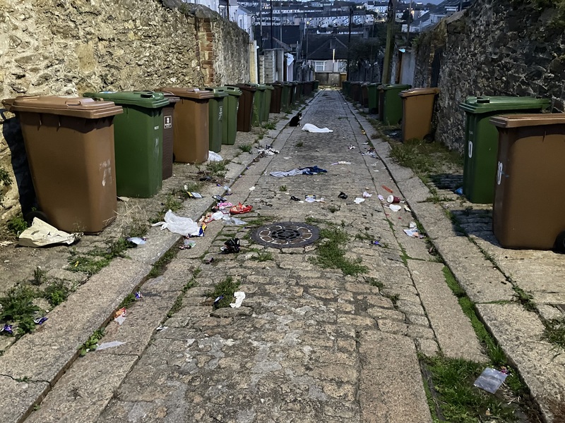 Northdown Crescent Keyham Plymouth UK In addition to 9 bags of litter, we collected: 5 broken TVs - 1 wooden side table - 1 wooden wine rack - 2 broken kids bikes - 2 broken kids scooters - 1 gaming chair - 2 broken wooden chairs - 1 plastic chair - 2 headboards - 1 metal clothes horse - 1 broken air-fryer - Loads of metal bars - Part of a trolley - Random bits of wood - 2 sections of a animal cage - Oh and a random lettuce