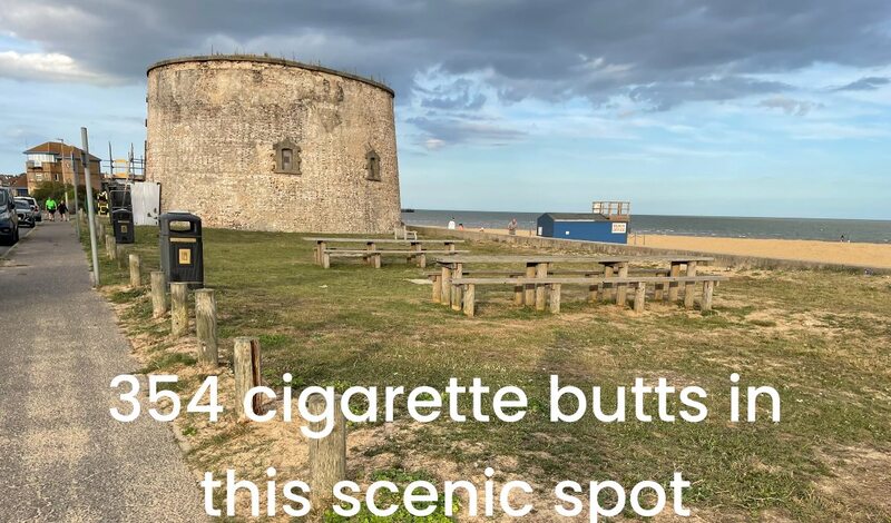A concentrated pick today on a small patch of grass near the historic martello tower. this area, that has two picnic tables and another bench. There are two season waste wheelie bins and also two permanent council bins. Despite this i picked over 350 cigarette butts . This count is going towards the clacton Blitz the butt campaign count.